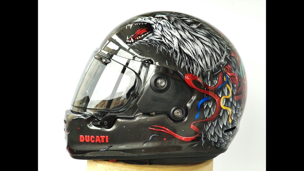 Cristina i-a dăruit soțului ei, Dragoș, de ziua lui, o personalizare a căștii de motocicletă.